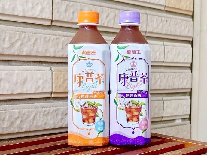 「經典茶香」與「微酵果香」是葡萄王於今年4月在全家推出的新口味康普茶,主打低糖低卡,清爽順口滋味回甘
