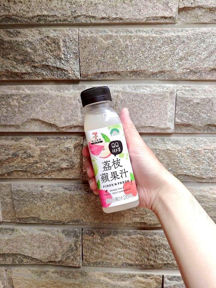 瓶身上的宣傳標語為「香甜蘋果x清爽荔枝」。實際喝過之後,白白覺得雖然荔枝和蘋果甜香很明顯,但白白覺得味道過於甜膩,喝到一半有點受不了