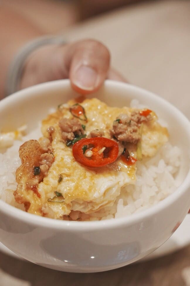 半熟蛋淋上花椒肉末,蛋香+香麻超犯規