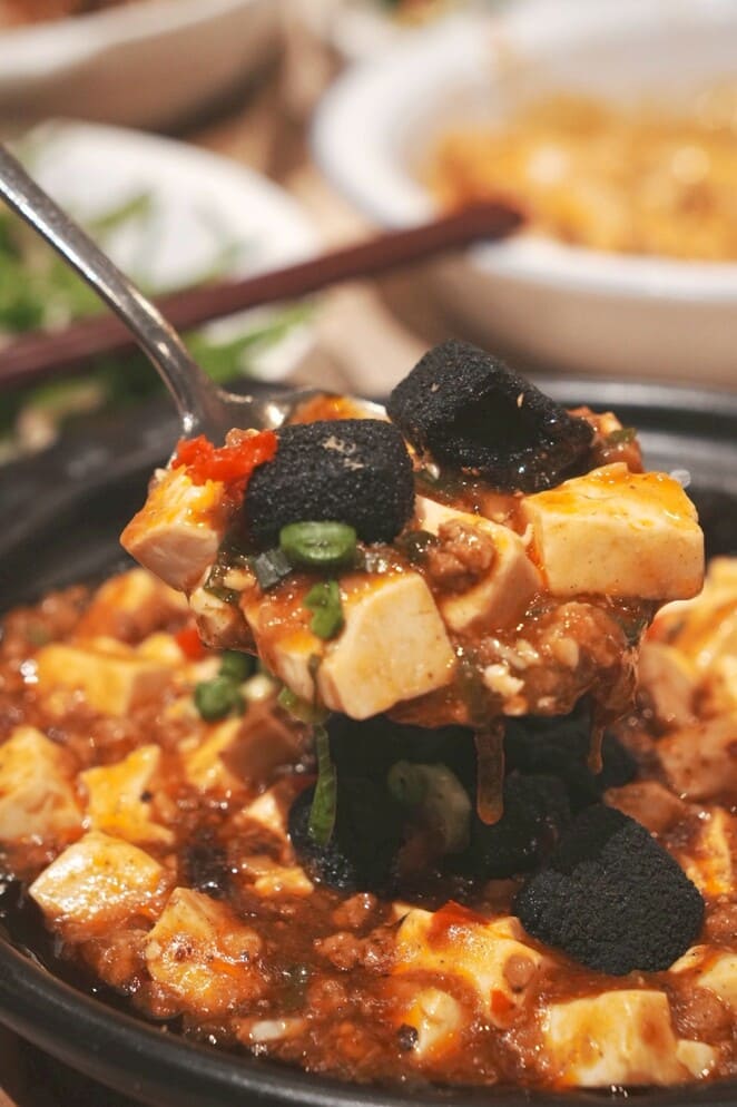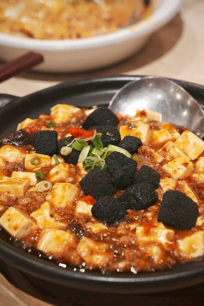 原本以為黑色部分是鴨血或豬血,結果居然真的是黑豆腐!彈牙黑豆腐+軟嫩白豆腐雙重口感,花椒香氣在口中翻滾,麻香超帶感!