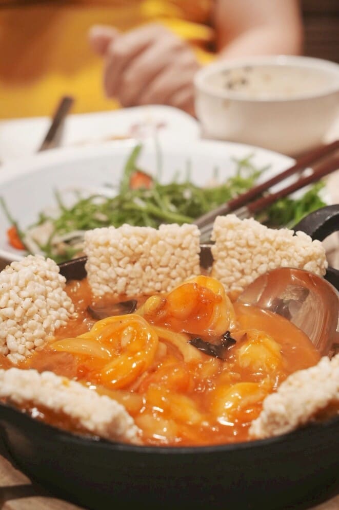 酥脆鍋巴配糖醋蝦仁,酸甜滋味超討喜